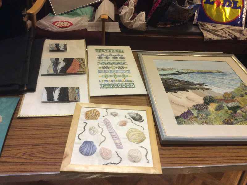Meriel told us about travelling bools and those that have signed up now have a list of contact details for those in their group so they can keep one another informed if they are not able to attend a meeting and make arrangements to pass the books on. Also please remember to sign your work either on the work itself or on the page in the book.